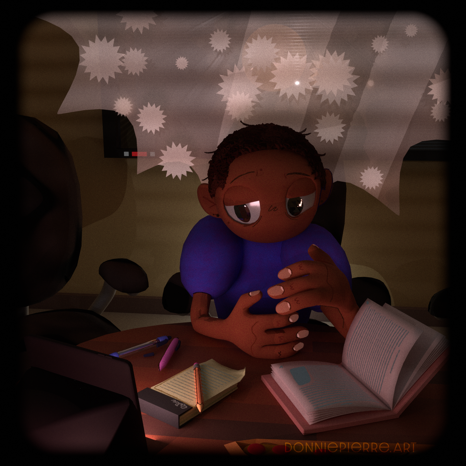 Hi! My Name is Pierre; some people call me Donnie; and I am an artist and occasional animator currently in school for audio engineering/production. I enjoy making 3d illustrations in my freetime using Blender. Thanks for stopping by my little website!